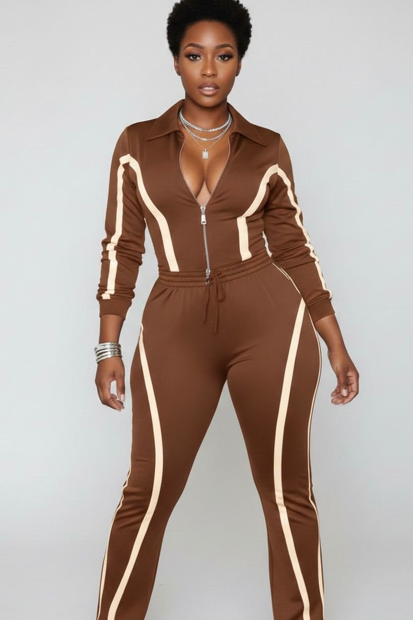 Be the first to review “Zip Front Striped Jogger Set”